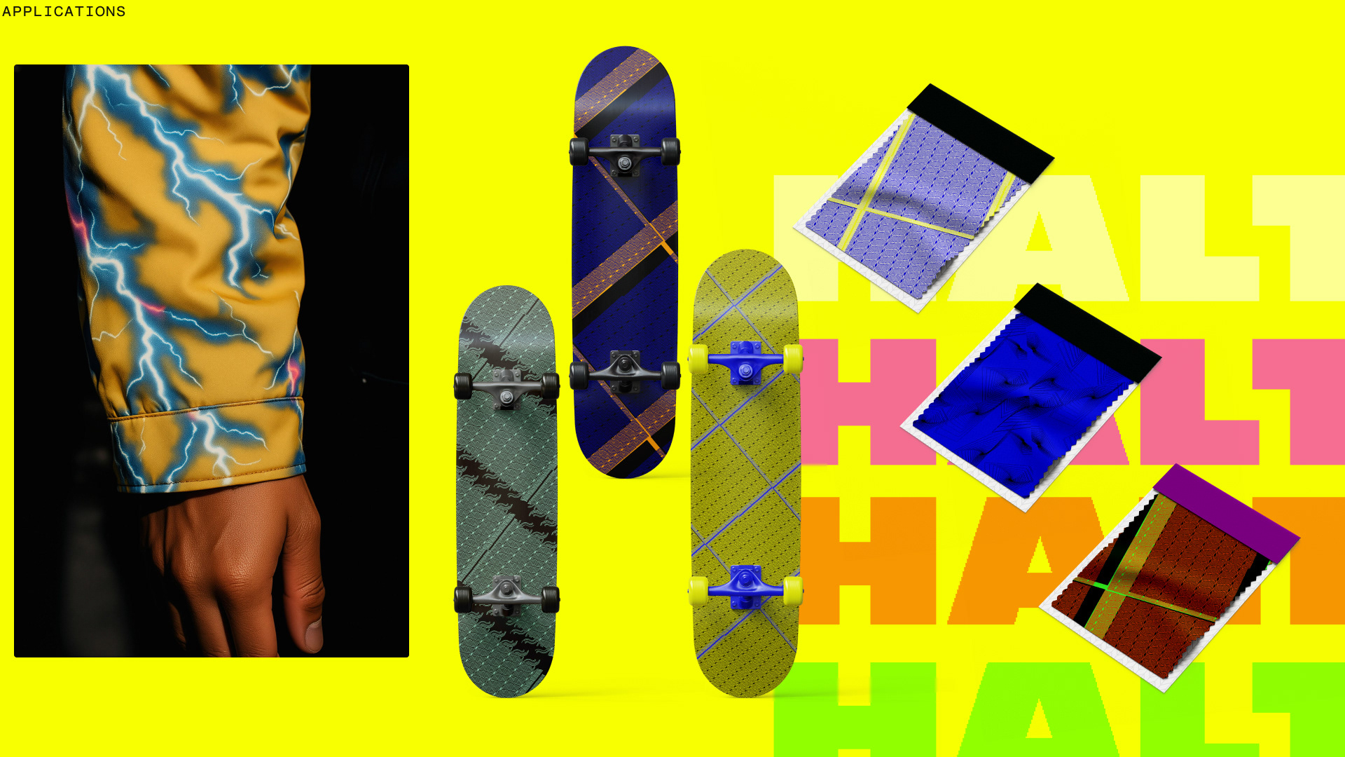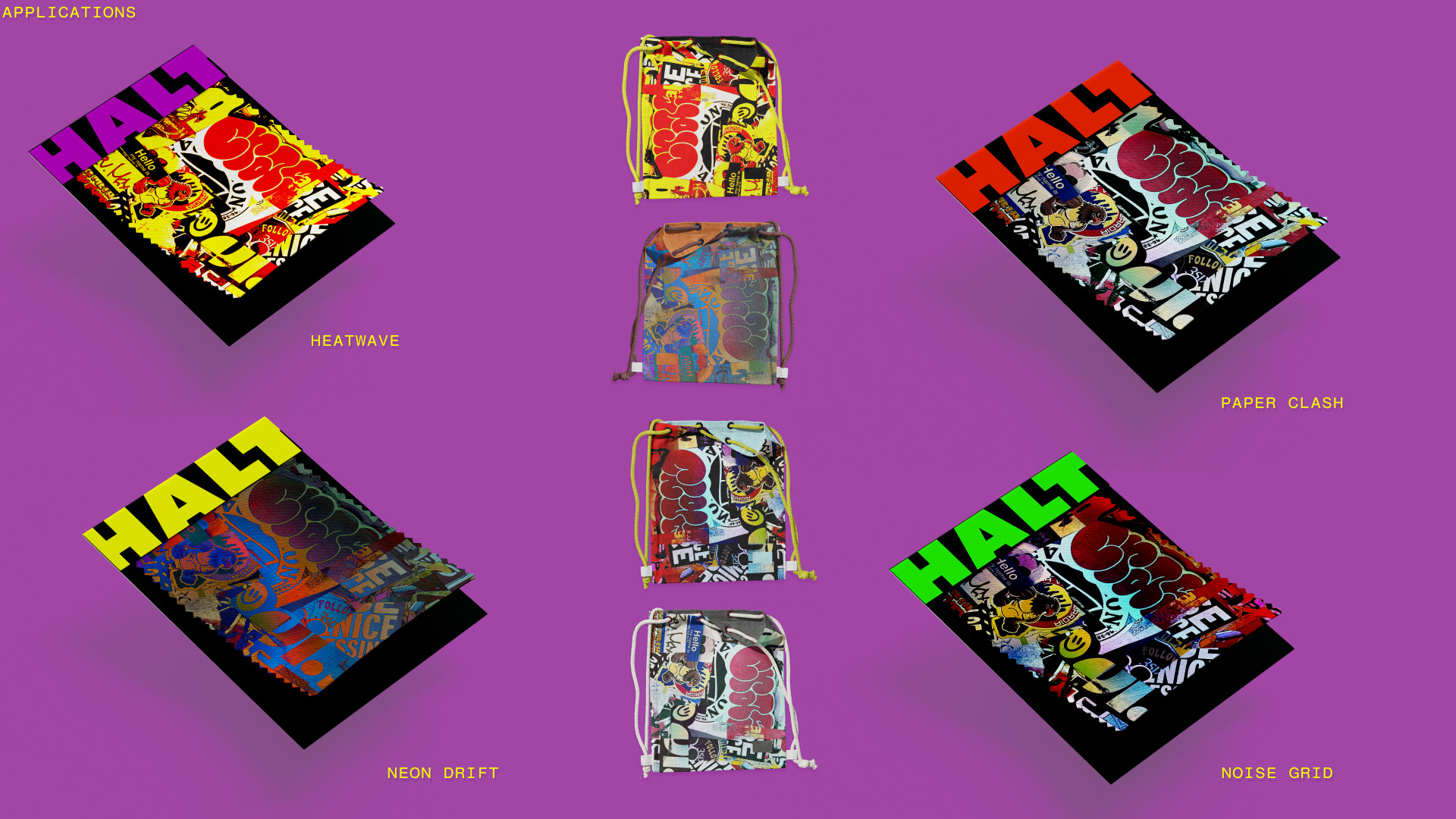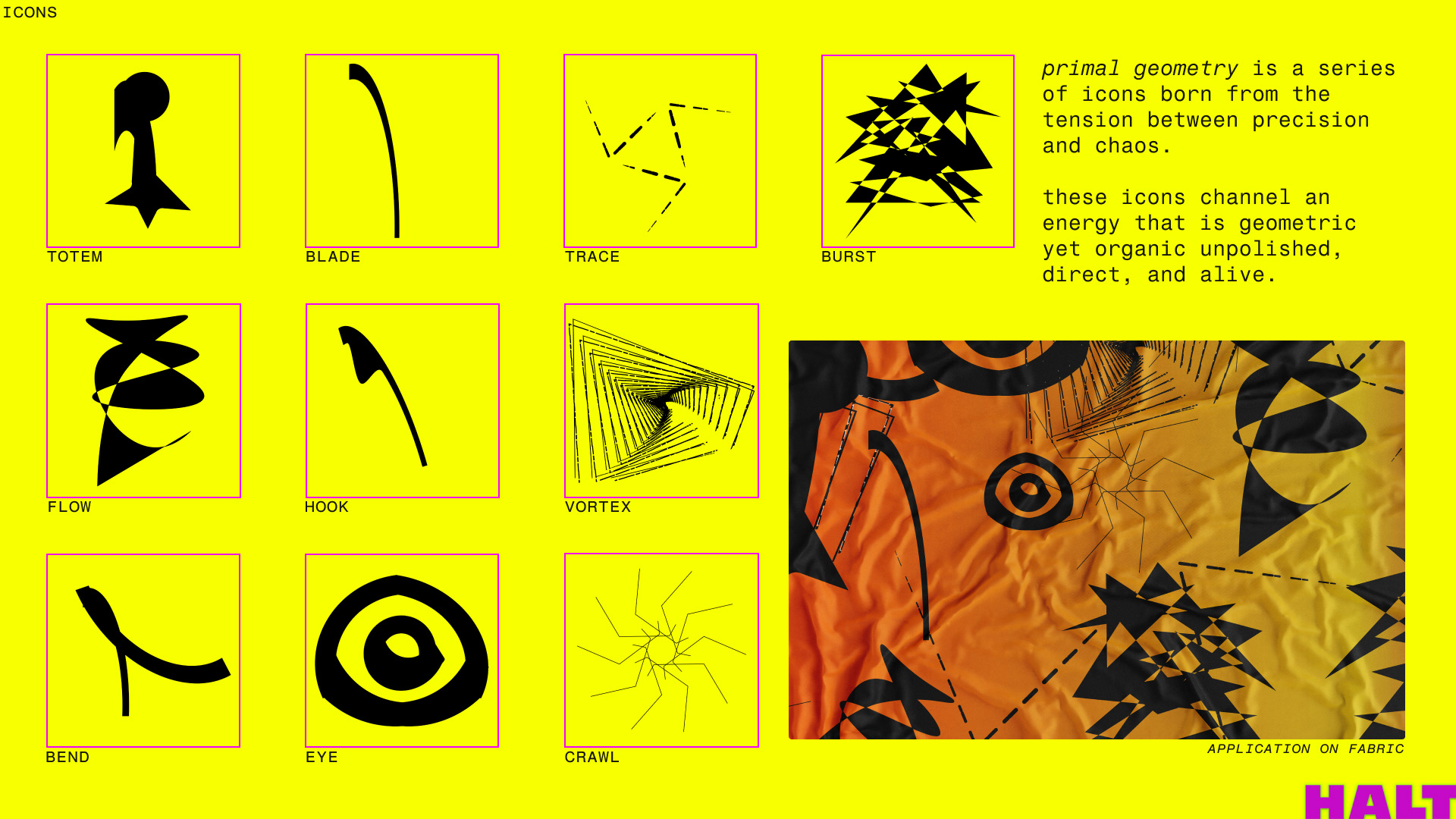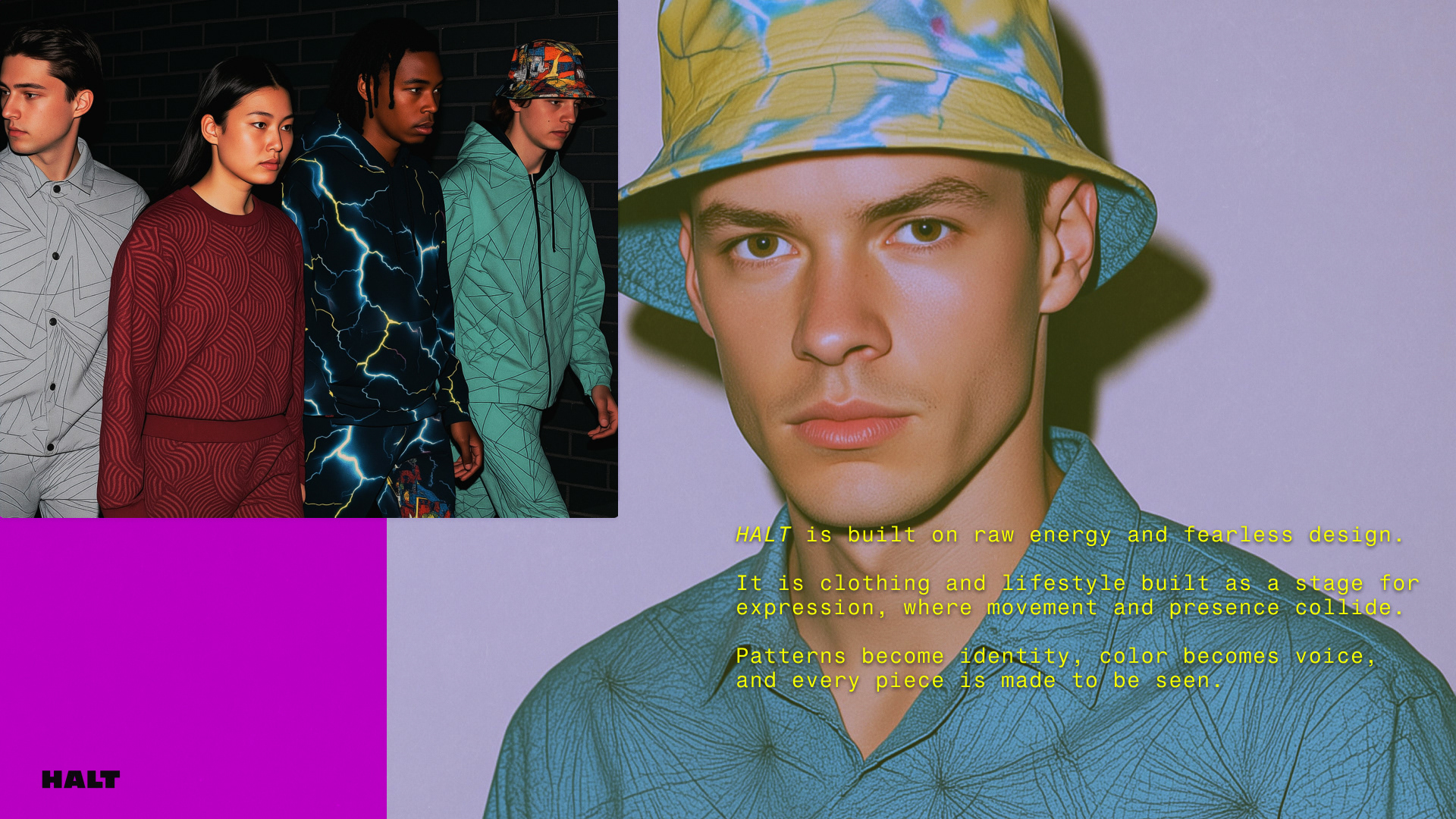 HALT is an experiential fashion and lifestyles brand that merges street energy and raw geometry. It delves into the intersection of motion, pattern, and identity via aggressive surface design for fashion and accessories.