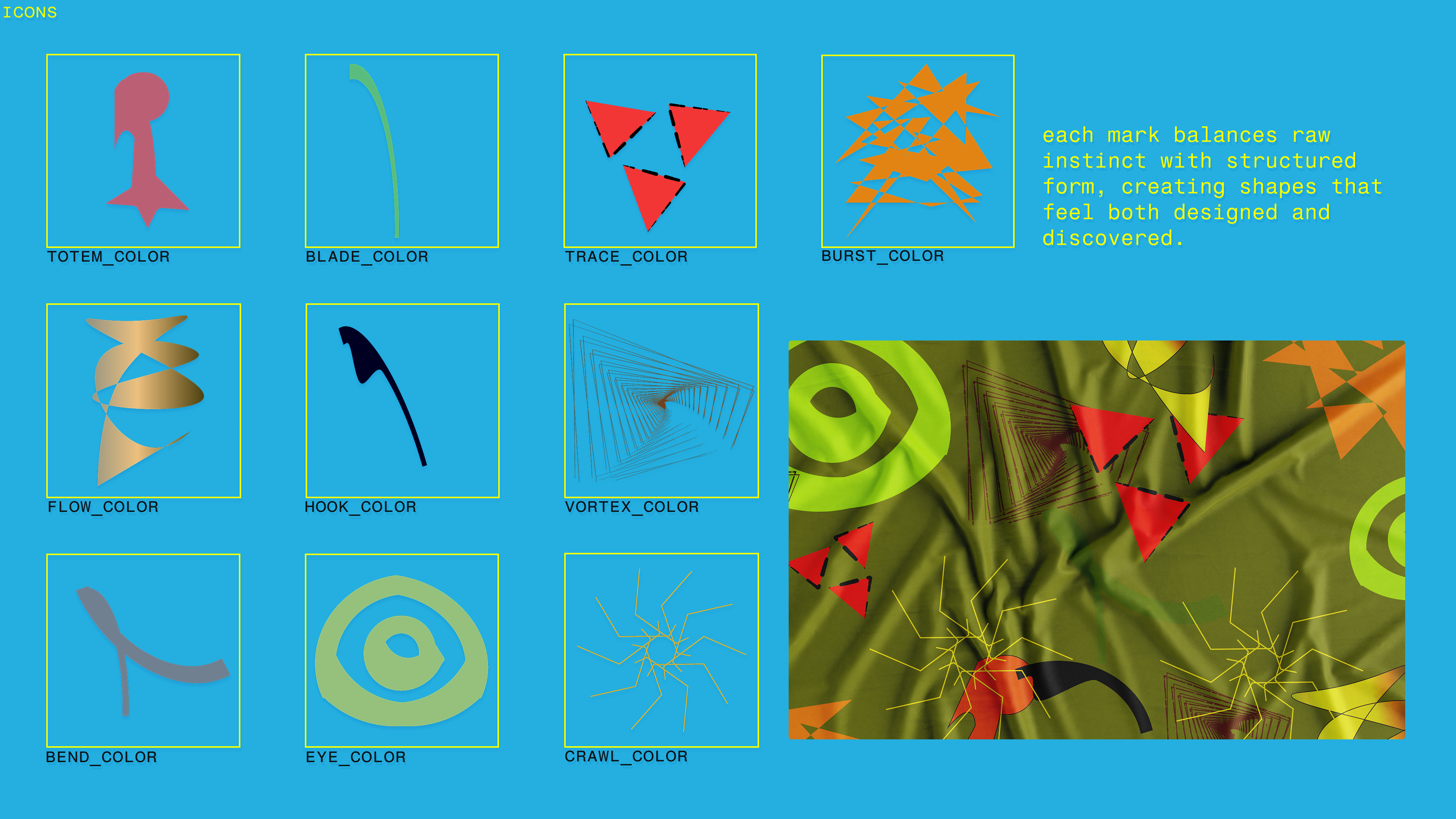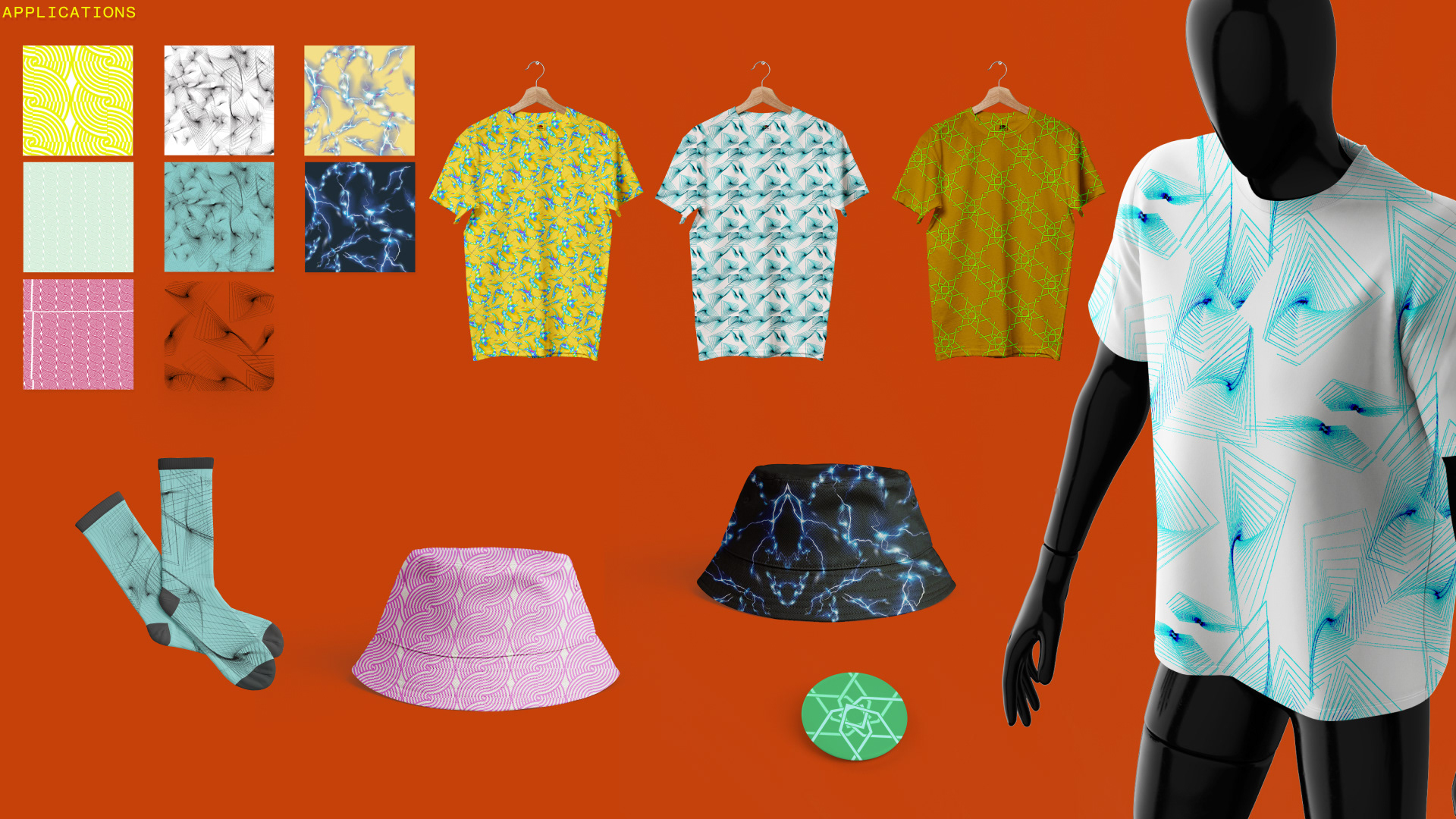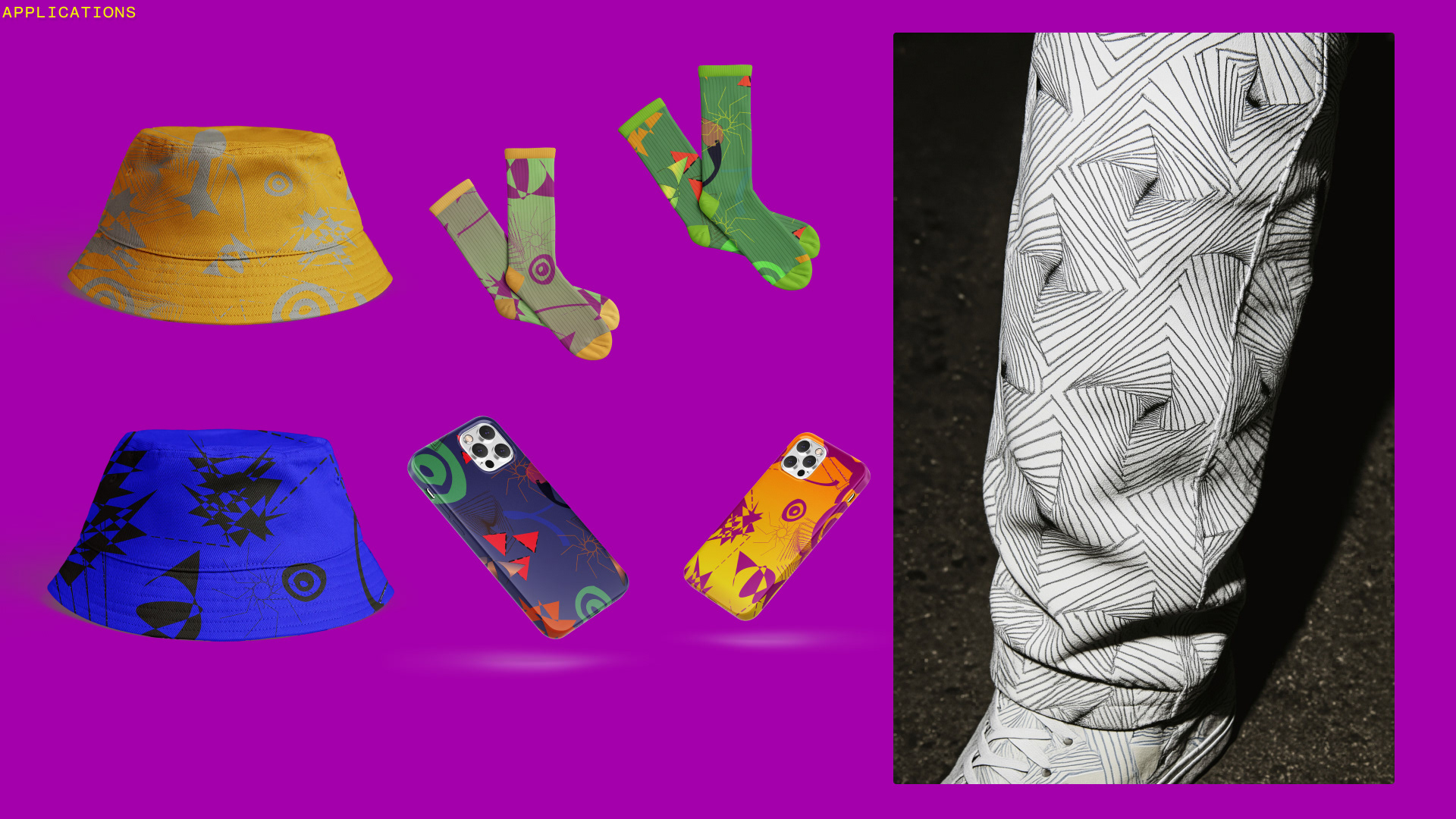 I created the idea and visual direction, pattern and icon systems, and AI-produced fashion photography and lookbook photography. Prompt engineering for fabric visualization and lighting and setting the color, type, and packaging system also made it onto the project.